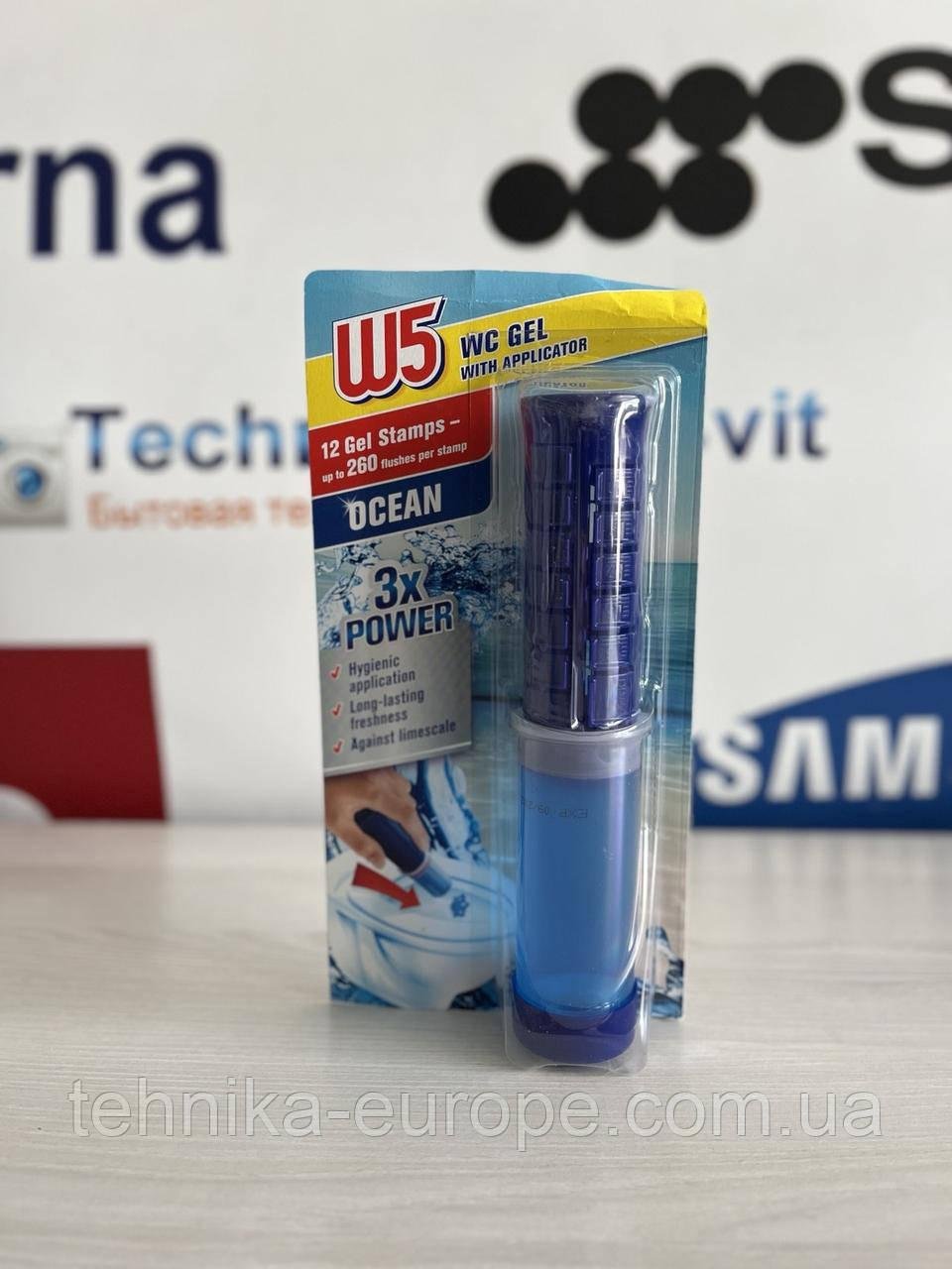 Гель для унітазу з аплікатором W5 у формі гелю. Він не тільки очищає унітаз, але й запобігає утворенню накипу, забезпечуючи свіжість та чистоту.